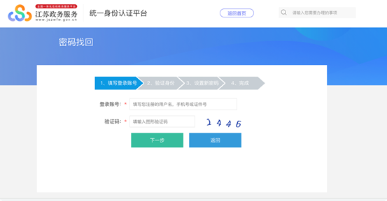 在密碼找回頁面輸入賬號信息(身份證號碼、手機號或者證件號)