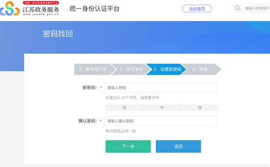在設置新密碼界面輸入密碼后點擊下一步即可完成密碼修改,后續使用新密碼登錄即可。